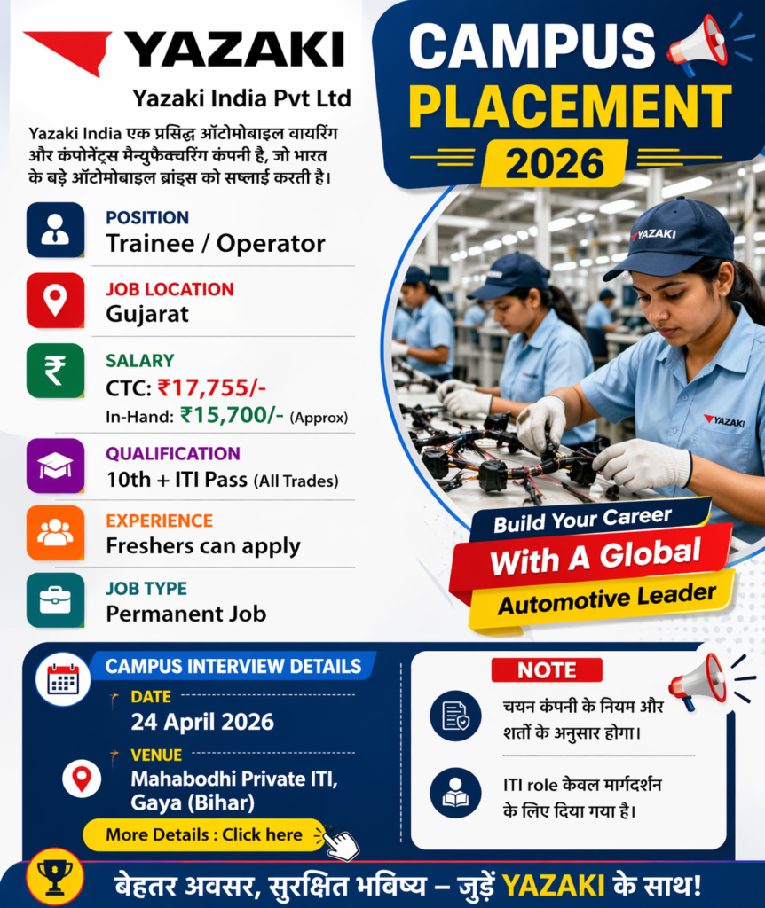 Denso India Private Limited Campus Placement 2026 | ITI Pass | Permanent Job Denso India Private Limited Campus Placement About